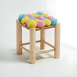 This funky style multi pom pom stool brings bohemian charm to any space. Crafted with a sturdy natural wood structure, it features delightful pom-pom details that add a whimsical touch. Designed for durability and style, this stool is perfect as an accent piece, footrest, or extra seating. Its vibrant and versatile design makes it a standout addition to your home decor.