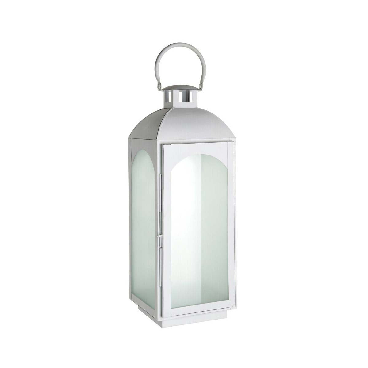 Enhance the ambience of the bedroom or living room with the Complements lantern. This traditionally styled piece is made from tough steel, its white wash finish and frosted glass detail softening the look.