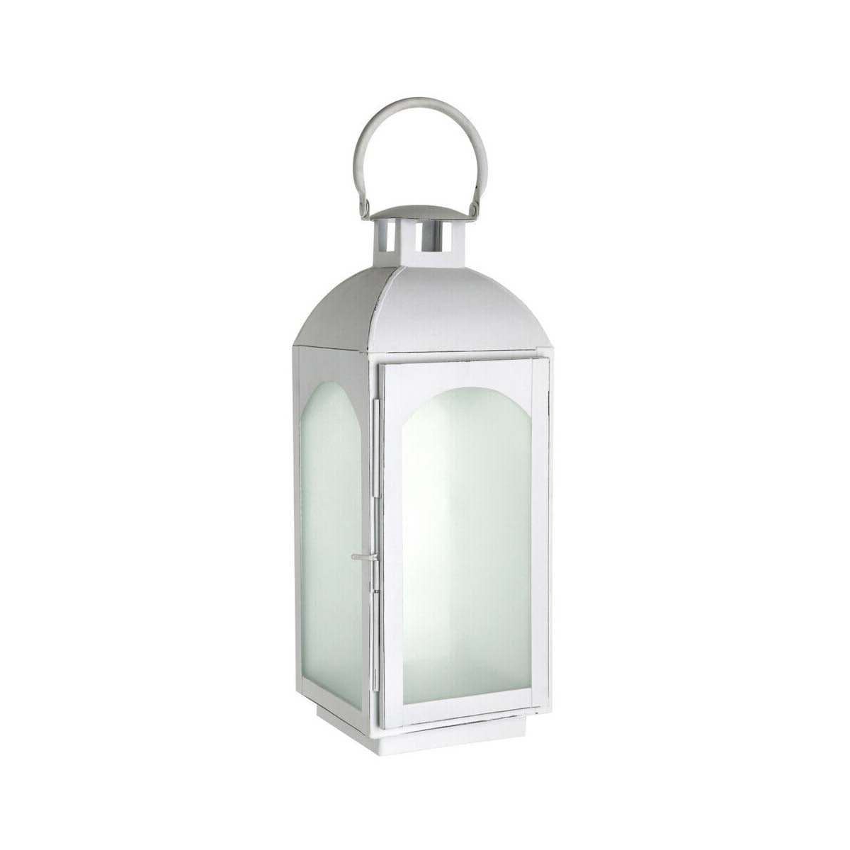 Enhance the ambience of the bedroom or living room with the Complements lantern. This traditionally styled piece is made from tough steel, its white wash finish and frosted glass detail softening the look.
