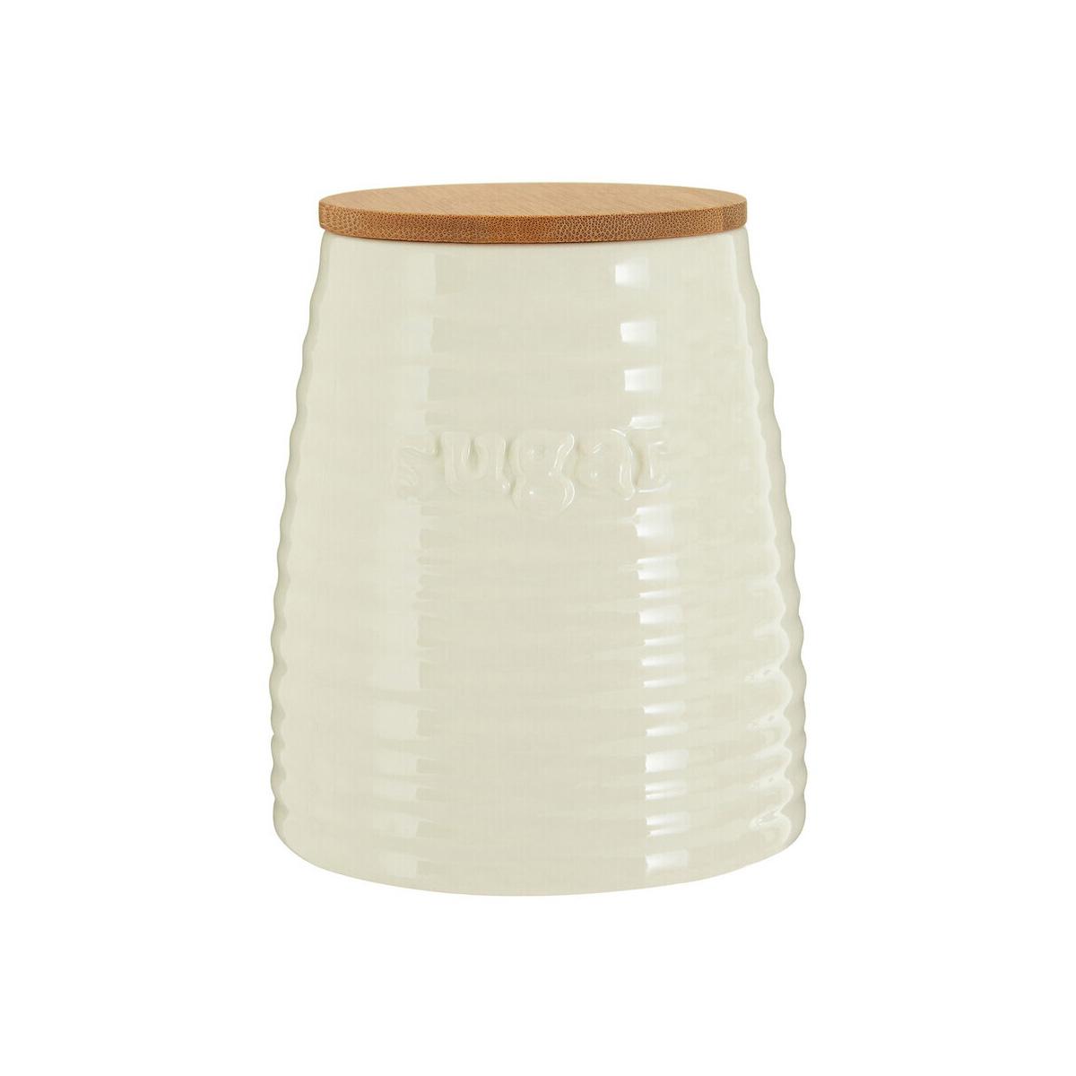 The tapered design canister is made from durable dolomite and features embossed ribbed detail with worded 'sugar' text ensuring easy identification. The cream finish will bring a touch of freshness to your kitchen. Securely fitting on top, the bamboo lid will keep your granules safely stored and fresh for longer, so you can be sure to get the sweet flavour you desire. Complementing most decors, the Winnie sugar canister will make a stylish and practical accessory in all kitchens.