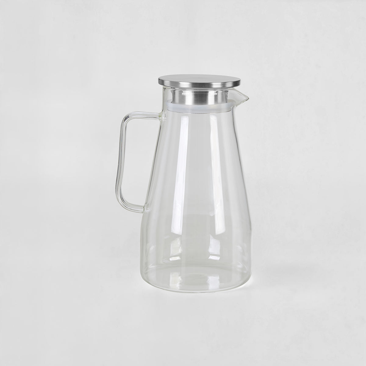 This 1800ml jug is crafted with glass in a smooth transparent finish featuring an ergonomic handle, a lid and a spout for pouring. The stainless steel lid has an inner silicone seal to keep the contents airtight and fresh.