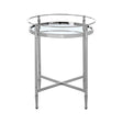 The table's elegant frame is created from stainless steel with a stylish silver finish. The unique frame extends above the tabletop creating a rail effect and adding distinction.