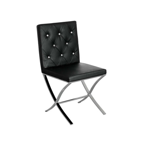 Diamante Black Leather Effect Chair With Stainless Steel Cross Legs