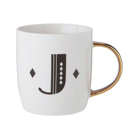 Diamond Deco White Monogram Mug, J