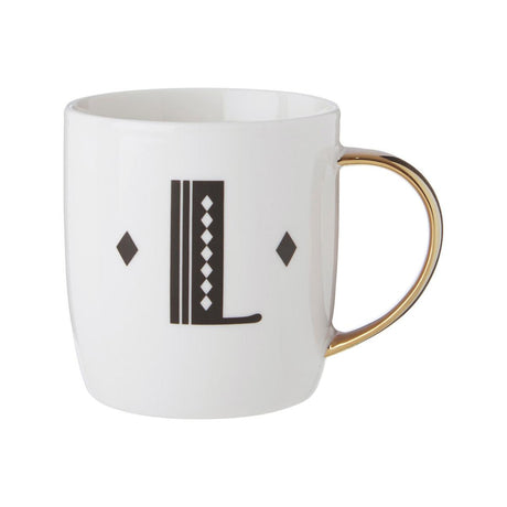 Diamond Deco White Monogram Mug, L