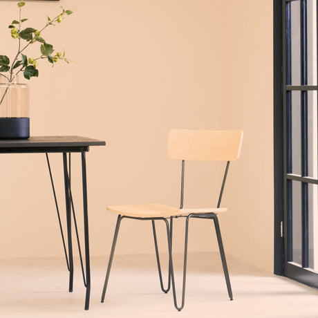 District Dining Chair Elm Wood Seat With Black Finish Metal Frame
