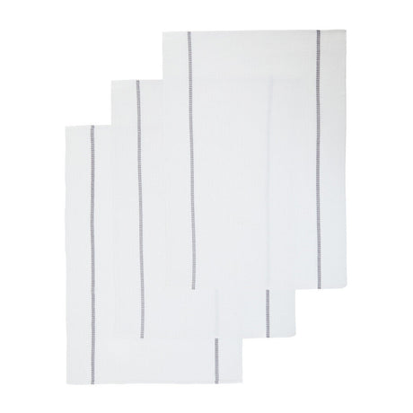Doro Set Of Three Waffle Blue And White Tea Towels