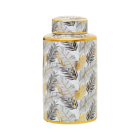 Doria Large White And Gold Finish Ceramic Jar