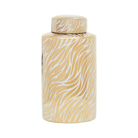 Doria Small White And Gold Finish Ceramic Jar
