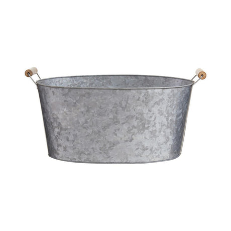 Drummond Galvanised Steel Round Tray With Wood Handles