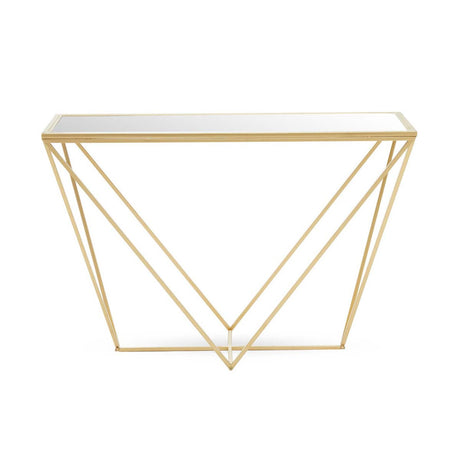 Farran Champagne Gold Finish Console Table With Mirror Top