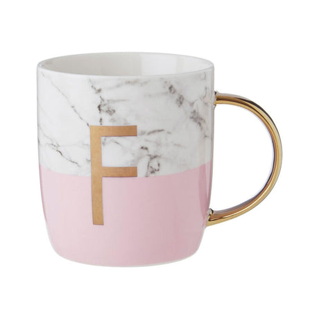 Frosted Deco Marble Effect and Pink Monogram Mug, F