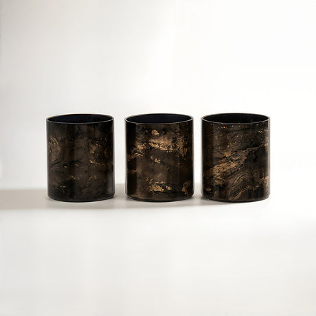 Gaia Set Of 3 Black And Gold Tealight Holders