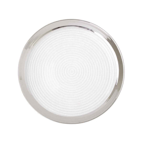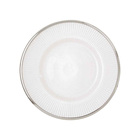 Ida 33cm Embossed White Glass Charger Plate with Silver Rim