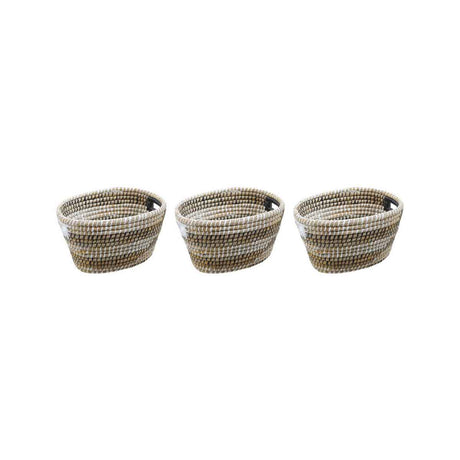Lidi Set of Three Rectangular Seagrass Baskets with Lids