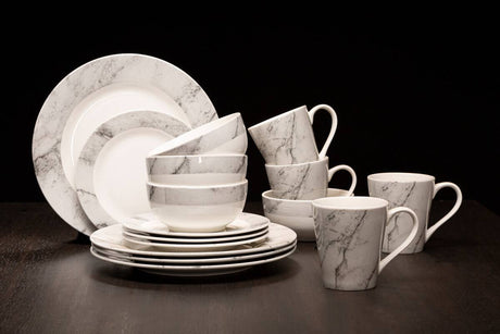Avie 16pc White And Grey Marble Effect Dinner Set