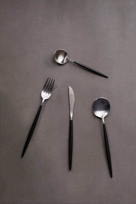 Avie 16 Piece Matte Silver and Black Cutlery Set