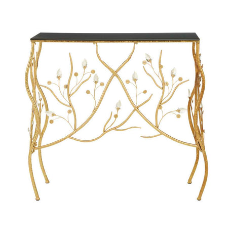 Yaxi Rectangular Console Table With Gold Frame and Black Top