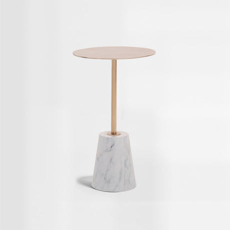 Avola Brushed Gold Side Table with White Marble Effect Base