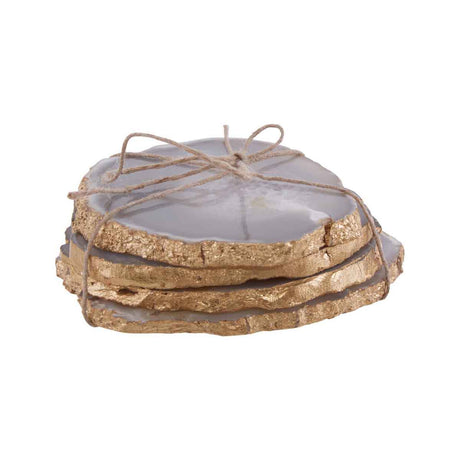 Bowerbird Set of 4 Agate Grey and Gold Coasters