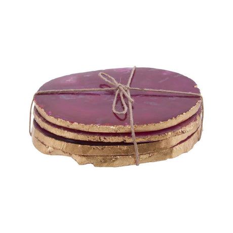 Bowerbird Set of 4 Agate Pink And Gold Coasters