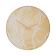 The Celina wall clock features a warm, gold coloured frame that coordinates with the base colour of the face. Wintery trees offer a relief in crisp white, producing a distinctive pattern that draws the eye. The hands have a tapered, minimal design and are coloured gold to complement. A pane of clear glass covers the face.
