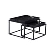 Boasting a simple, elegant design, this set of two nested rectangle side tables feature modern black finish tray tops with an abstract brushstroke design. The tabletops are removable, for use as handy serving trays. Decorative and practical, these tables are perfect for placing alongside a sofa or armchair.
