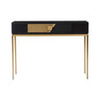 Bring a geometric effect in your room with Davoli console table featuring two tones and diagonal designs. The grains of the grey side are subtly contrasted by the fluted black side. The console table is complemented by gold finished handle and a solid base.