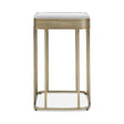 This contemporary side table creates an elegant look with a series of gold finish lines forming its frame. A mirrored glass sits atop the minimalist frame with a border in decorative texture that matches the open base. This modern side table will complement modern home decor.