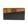 This natural bamboo console table features a minimal profile with clean sides in two tonal contrast. An angular line intersects the upper part in rich grain character with a base in a dark ebony finish, which combine to create an eye catching look.
