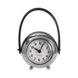 Created from sturdy metal, the large Globe table clock boasts a reflective silver finish, lending a sense of luxury. Spherical in shape, the rear of the clock features etched world map detailing, with each country labelled in an uppercase serif typeface.