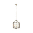 This four-pronged pendant light is attached to an adjustable chain and features a circular profile. Skilfully handcrafted, the clear glass panes are adjusted neatly in the chrome finish frame allowing the six bulbs to lend a warm glow in the living area.