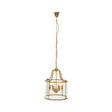 This four-pronged pendant light is attached to an adjustable chain and features a circular profile. Skilfully handcrafted, the clear glass panes are adjusted neatly in the brass finish frame allowing the six bulbs to lend a warm glow in the living area.