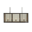 The Hampstead pendant light is ideal for illuminating dining zones thanks to its wide box kite shape. Panels of gauze create a semi-transparent effect which reveals the five bulbs and strong iron frame. A pair of sturdy hanging chains attach to a rectangular ceiling mount which keeps the piece stable and secure. Hints of gold create a subtle tonal contrast to the antique black finish.