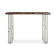 The Hampstead console table perfectly combines different elements to create a modern and unique feel. The natural wood table top rests on top of two stainless steel bases.