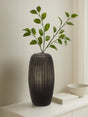 Adding glamorous intrigue to the aesthetics, this vase exhibits a ribbed pattern that adds character and texture to the surface. Made from robust glass, this vase in grey hues adds a tasteful and timeless allure to the floral setting.