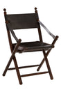 Made from solid teak wood, this chair has a cross design frame that folds up easily for storage. The wood is finished in black to match the genuine leather seat and backrest, which is complemented by slanting, leather strap armrests.