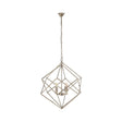 The chandelier's four candle-style light fixtures are situated within a geometric frame created from strong stainless steel, with a stylish nickel plating lending a touch of luxury.