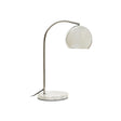 This chrome finished single bulb table lamp is a modern addition to any decor, white marble round base supports the arched body's scalable design. Lamp's appealing metal dome shade is placed at the end of the arc, making it versatile and functional.