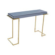 Made from grey glass, this console table features a rectangular mirrored top in a smooth finish. The clean lines of the muted grey top contrast the luxe gold finish stainless steel sledge base forming a C-shaped design.