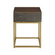 The cabinet of the Kempton side table is covered with tactile shagreen and features a single drawer with a discreet iron handle. The handle is coloured gold to match the minimal-style iron legs. Coordinate it with the Kempton coffee table.