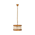 This drum-shaped pendant light features clear glass panes that are raked manually around the bronze finish metal frame. Boasting a fluted pattern, this light with five bulbs will produce an ambience of soft glow to the hallway or dining room.