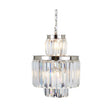 This luxurious light is a great way of making a Boutique statement in the living or dining area. Its main body is comprised of two layers of crystal glass that descend from a canopy made from reflective steel.