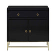 The Kensington Townhouse cabinet is a luxurious statement piece. The cabinet has a large sliding drawer at the top, while a pair of doors below open to reveal a single shelf. Gold coloured handles contrast with the black finish.