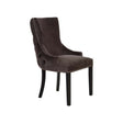 Kensington Townhouse brown velvet dining chair with deep tufted button on curved back rest with stud detail and black legs this chair will make an elegant statement in any living space in your home.