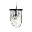 Give the dining area or living room a touch of Boutique glamour with this striking pendant light. Individual lines of crystal swoop downwards then return to the circular iron frame. The frame's black finish coordinates with the strong metal chain wh