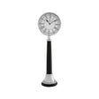 The monochromatic Kensington Townhouse table clock is a striking blend of black and nickel finishes. A vintage-style clockface features Roman numerals and elegant hands.