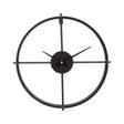 Crafted from metal in a black finish, this small wall clock has a modern and minimalist design with two smooth rings forming its frame. Clean intersecting lines join in the middle to support the dial and slender hands.