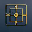 This small wall clock has a sleek double framed square metal design in a luxurious gold finish. The design comes complete with Roman numerals and black spade hands which contribute to a modern minimalist aesthetic.