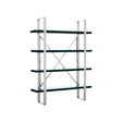 This four tier shelf unit adds elegance to any space with its black wooden shelves and silver frame. The open glass topped shelves provide quick access and allow easy cleaning, with the overall structure creating a modern aesthetic.